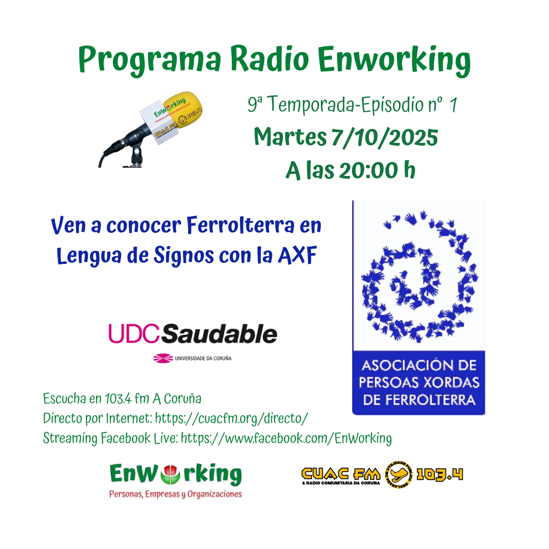El programa de hoy se enmarca dentro de las colaboraciones del Programa de Radio Enworking con la UDC Saudable. Y en concreto es una de las actividades que se desarrolan dentro del programa XI Octubro Saudable 2025 - Facultad de Derecho.